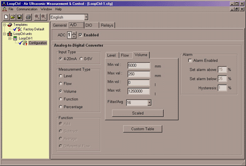 • Level, Volume and Flow. Various standard tanks/weirs/flumes or custom tables can be selected. Totalizer functionality is provided for each channel.
